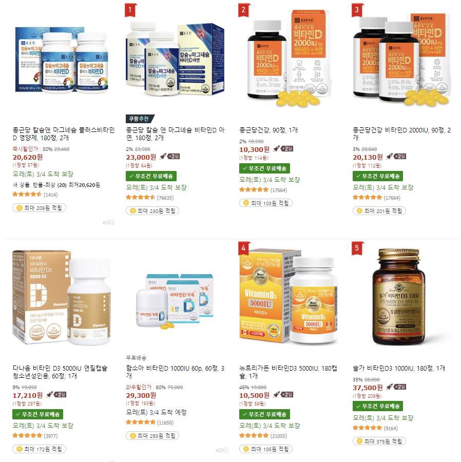 또한 비타민D는 지용성 비타민이기때문에 몸에 지방이 많은 사람은 체지방에 비타민D가 녹아들어 간다고 해요 비타민D를 꾸준하게 섭취해 수치가 떨어지지 않도록 하는 것이 다이어트에 도움이 될 수 있습니다.